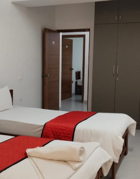 Since 2018. Fully furnished 1 & 2 BHK units for daily, weekly, and monthly stays. Located next to Sansar Centre.